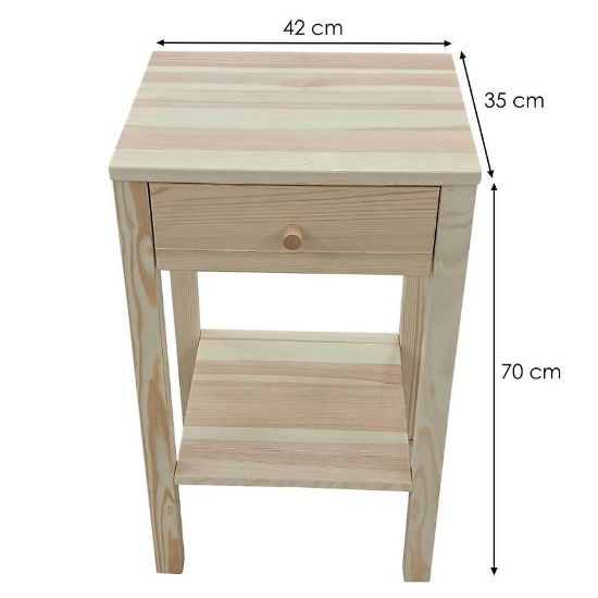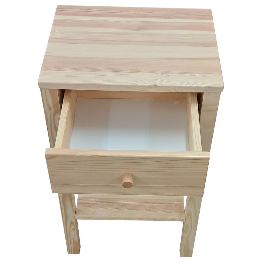 Stolik nocny Mono sosna to praktyczny i stylowy mebel, który doskonale wpasuje się w każdą sypialnię, szczególnie tę utrzymaną w klasycznym stylu. Wykonany z wysokiej jakości drewna, zachwyca naturalnym urokiem i starannością wykończenia. Stolik posiada kompaktowe wymiary, dzięki czemu idealnie sprawdzi się nawet w mniejszych pomieszczeniach, oferując przy tym wystarczająco dużo miejsca na podręczne przedmioty, takie jak książki, telefon czy lampka nocna.