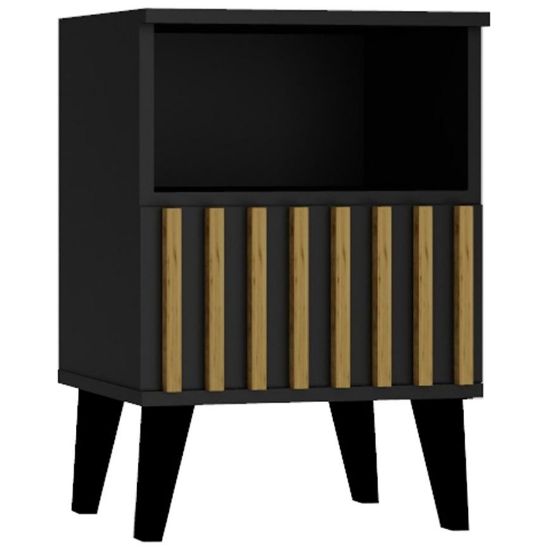 Charakterystyczną cechą stolika nocnego Lamillo są dekoracyjne elementy w postaci lameli, które nadają meblom tej kolekcji wyjątkowy charakter.