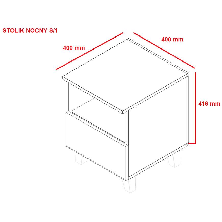 Kolor stolika to połączenie eleganckiej czerni z elementami w kolorze dąb artisan, tworząc kontrastowy i stylowy efekt wizualny. Ten design świetnie pasuje do sypialni urządzonej w stylu loftowym, ale może także stanowić intrygujący akcent w innych aranżacjach wnętrz.
