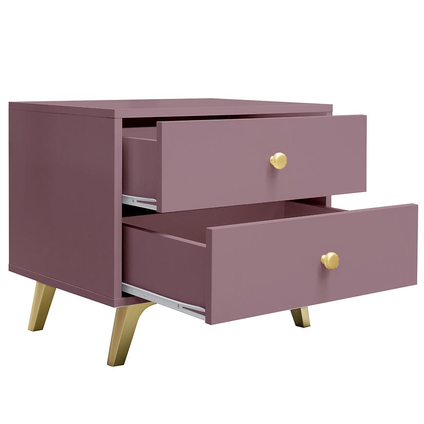 Jego matowe wykończenie nadaje mu subtelny, stonowany wygląd, który doskonale pasuje do różnych aranżacji wnętrz, zachowując jednocześnie swój klasyczny urok. Dwa szuflady zapewniają wystarczającą przestrzeń do przechowywania różnych przedmiotów, takich jak książki, okulary czy telefon, co sprawia, że stolik nocny jest nie tylko eleganckim dodatkiem do sypialni, ale także praktycznym meblem.