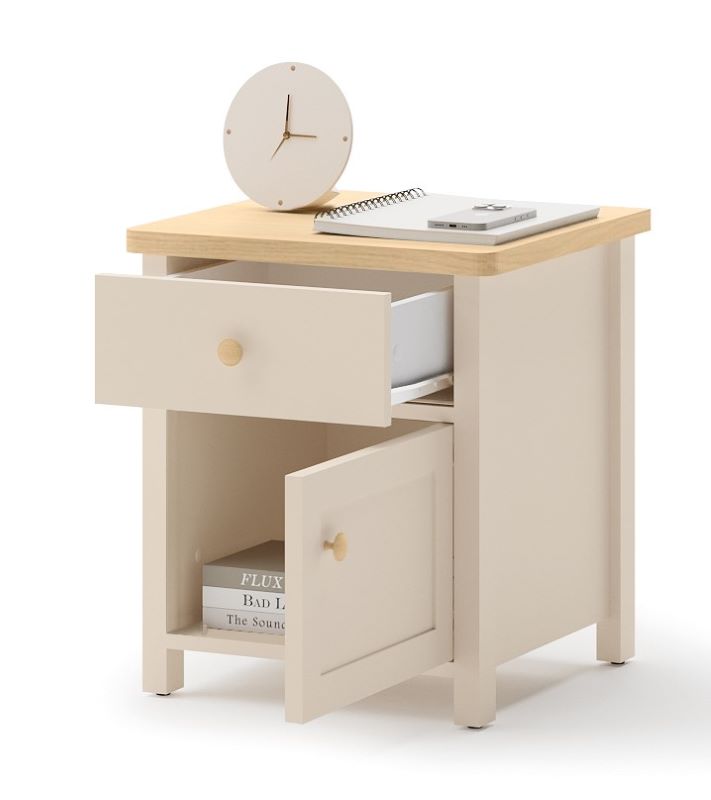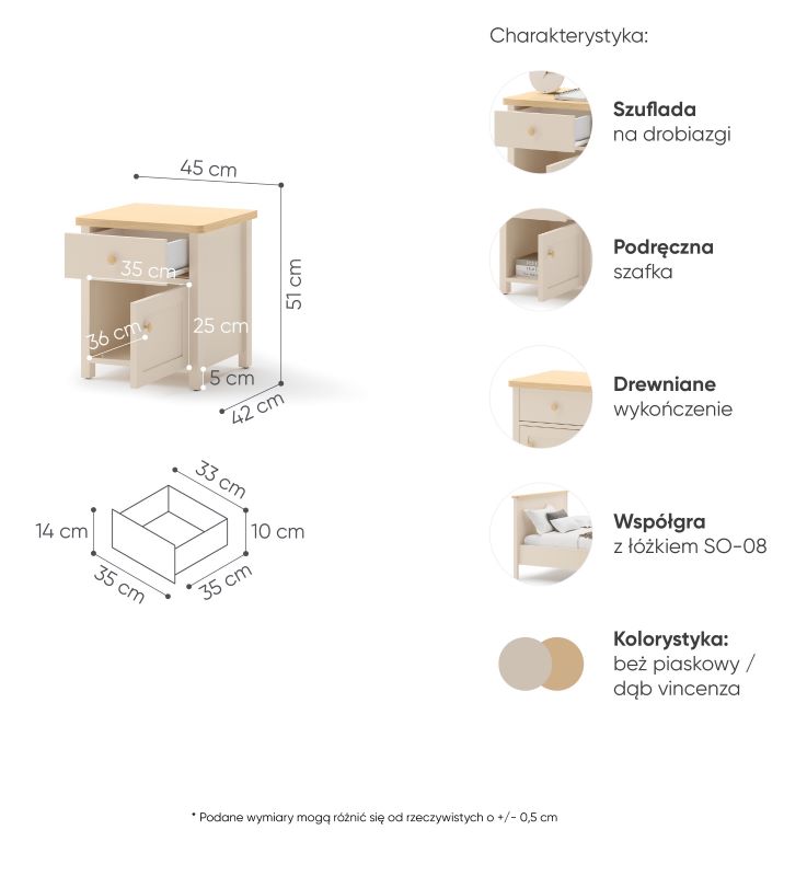- Stolik nocny Story SO-07 beż piaskowy/dąb vincenza