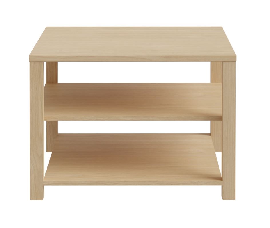 Solidne nogi z płyty MDF o wysokości 10 cm zapewniają stabilność, a jednocześnie sprawiają, że bryły prezentują się lekko i nowocześnie. Wbudowane ślizgacze chronią podłogę przed zarysowaniami, co czyni meble praktycznym wyborem do codziennego użytkowania. Drewniane uchwyty typu gałka podkreślają naturalny design i dodają całości subtelnego uroku.