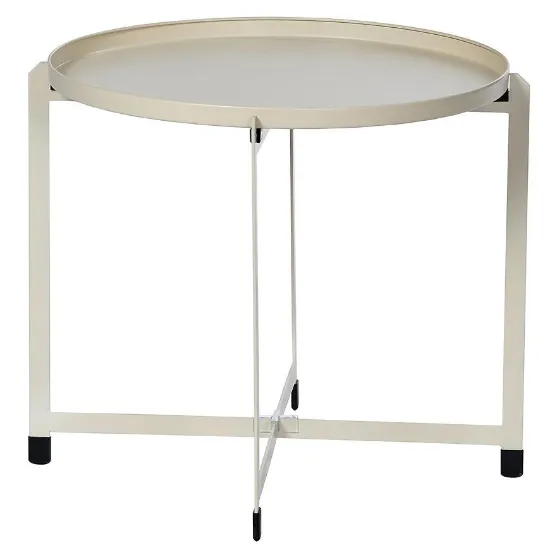 Metalowy stolik ogrodowy w kolorze beżowym