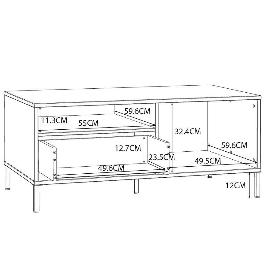 Kształt blatu: Prostokątny kształt blatu nadaje stolikowi elegancji i funkcjonalności, umożliwiając wygodne ustawienie różnych przedmiotów na jego powierzchni.