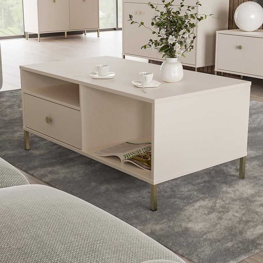 Kolor: Piaskowy odcień nadaje stolikowi subtelny i elegancki wygląd, który doskonale komponuje się z różnymi kolorami wnętrza.
