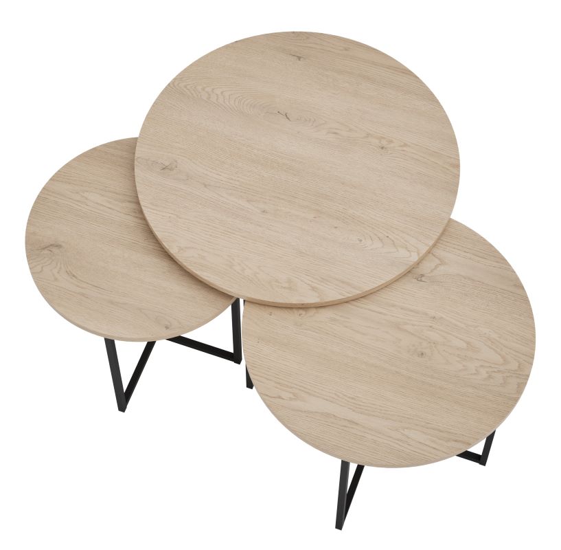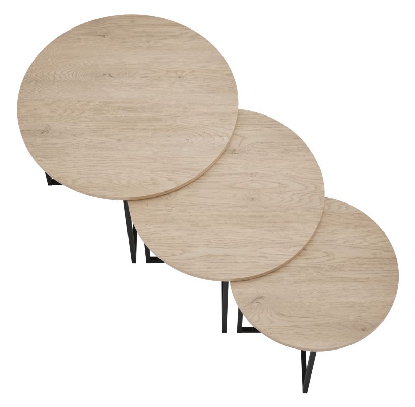 Okrągły kształt blatu wprowadza do pomieszczenia lekkość i sprawia, że stolik idealnie komponuje się przy kanapie, fotelu lub narożniku, zapewniając komfort podczas codziennego użytkowania.