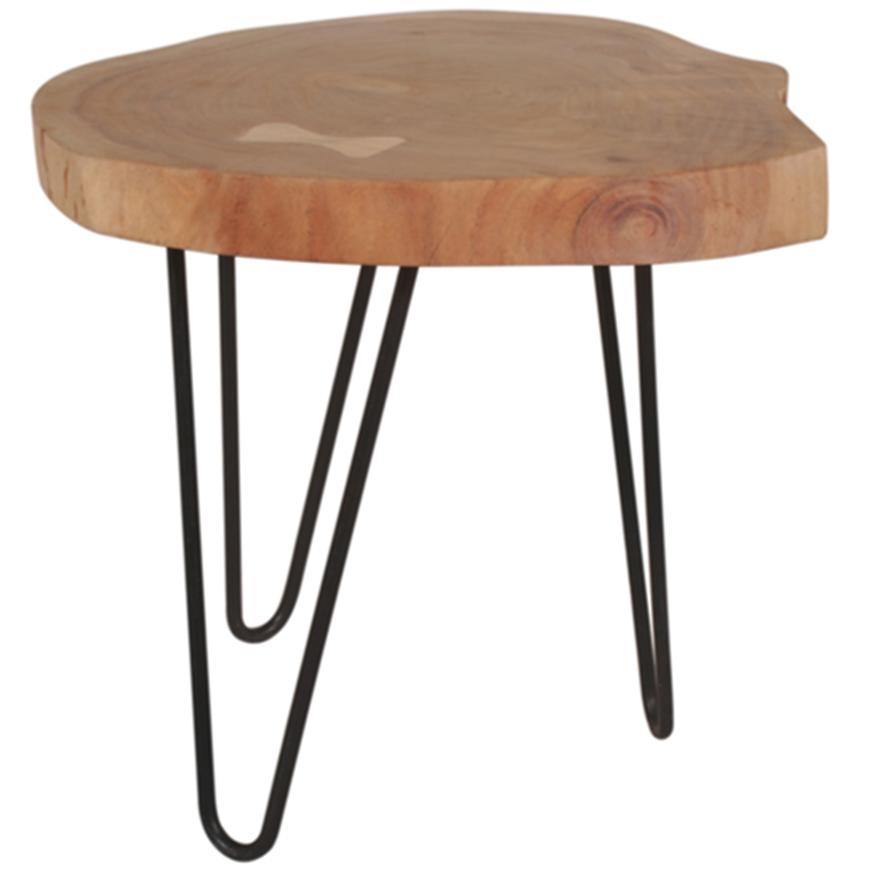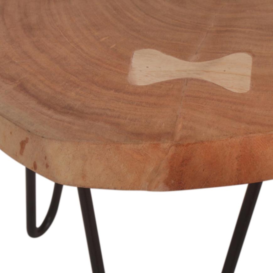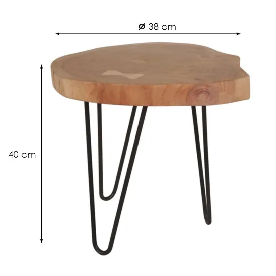 Blat wykonano z drewna z matowym wykończeniem, odpornego na codzienne użytkowanie i łatwego w czyszczeniu. Metalowy stelaż zapewnia trwałość i stabilność stolika, a minimalistyczna forma sprawia, że stolik pasuje do różnorodnych aranżacji wnętrz.