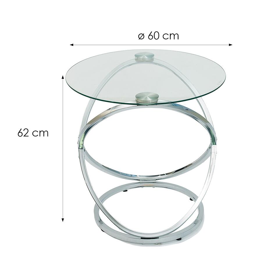 Stolik PMC-24016 to wyjątkowa propozycja dla osób ceniących połączenie klasycznej elegancji z nowoczesnym designem. Okrągły blat wykonany ze szkła hartowanego w połączeniu z chromowanym stelażem metalowym tworzy mebel trwały, lekki wizualnie i estetyczny, który doskonale wpisuje się w różne aranżacje wnętrz.
