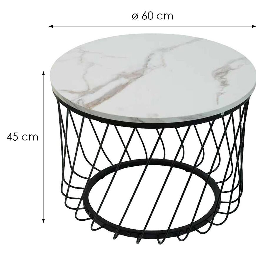 Stolik PMC-CT2516-2 łączy klasyczną elegancję z nowoczesnym designem, oferując mebel, który sprawdzi się w różnorodnych aranżacjach wnętrz. Okrągły blat w wybarwieniu biały marmur w połączeniu z czarnym metalowym stelażem tworzy harmonijną i stylową kompozycję, która wprowadza do wnętrza lekkość i wyrafinowanie.
