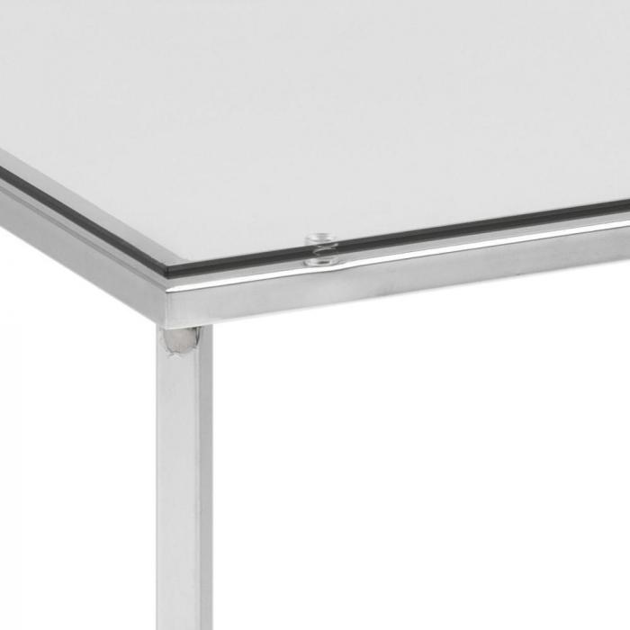Elegancki stolik kawowy, który wpasuje się w niejedno wnętrze. Stolik posiada metalową konstrukcję, a blat wykonany został ze szkła hartowanego. Stolik będzie pasował w nowoczesne, loftowe wnętrza. Idealny do pokoju dziennego lub salonu.