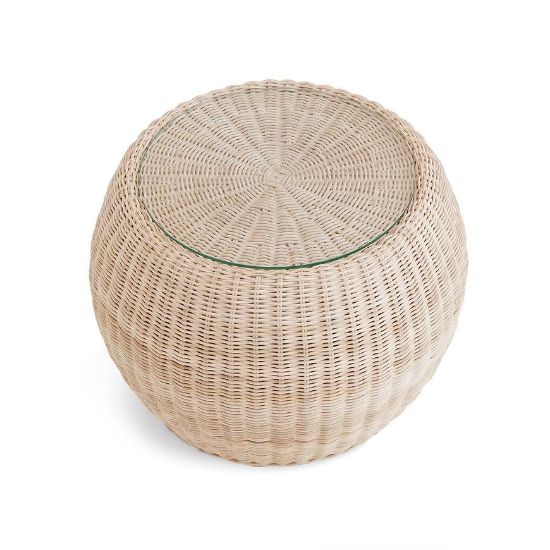 Kształt stolika, zaokrąglony i elegancki, przywodzi na myśl delikatną kulkę, co nadaje mu wyjątkowego uroku. Materiał rattanu dodaje mu przytulności i naturalnego wdzięku, idealnie komponując się zarówno z nowoczesnymi, jak i klasycznymi aranżacjami wnętrz.