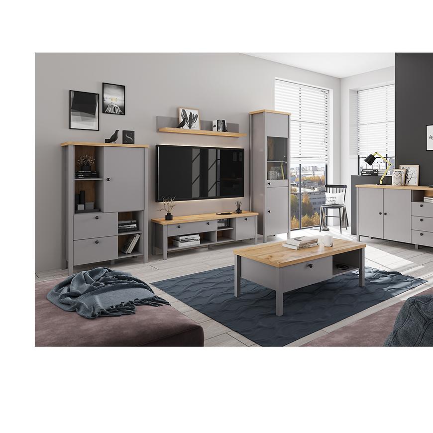 Stolik RTV 1D1S Melini Gray B - funkcjonalne rozwiązanie dla osób poszukujących designerskiego mebla do przechowywania sprzętu multimedialnego. Ten stolik nie tylko spełni Twoje potrzeby organizacyjne, ale także wprowadzi nowoczesny akcent do Twojego wnętrza.
