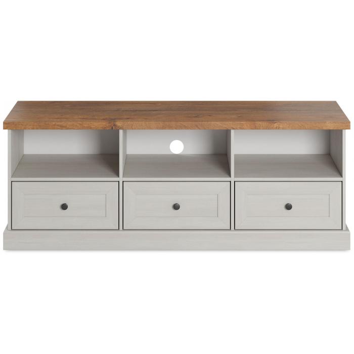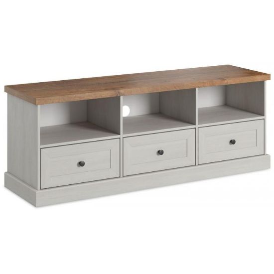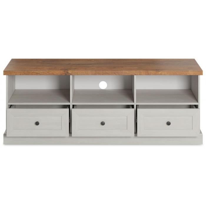 Meble RTV nie muszą być nudnymi elementami wyposażenia. Jak się okazuje, mogą stać się wyróżnikiem całej aranżacji. Przykładem takiego podejścia w tworzeniu funkcjonalnych mebli jest stolik RTV Boston. Składa się on z blatu, pod którym znajduje się półka, stanowiąca idealne miejsce do ustawienia poszczególnych elementów kina domowego, płyt lub czasopism. Charakteru całości nadają trzy szuflady na dole, wyposażone w metalowe uchwyty. Delikatnie wystający blat nadaje całości charakterystycznego wyglądu, łączącego w sobie elementy komody, ławy, a także prostego stolika. Utrzymany w minimalistycznym stylu model jest masywny i stabilny. Bez trudu połączysz go w spójną całość z pozostałymi meblami w pomieszczeniu. Stolik RTV Boston zyskał sobie sympatię kupujących także tym, że jest pojemnym elementem wnętrza, który dodatkowo łatwo utrzymać w czystości. Kolejną zaletą prezentowanego modelu jest łatwość jego montażu oraz trwałość – mebel prezentuje się efektownie, nawet gdy jest intensywnie użytkowany.
