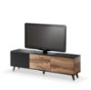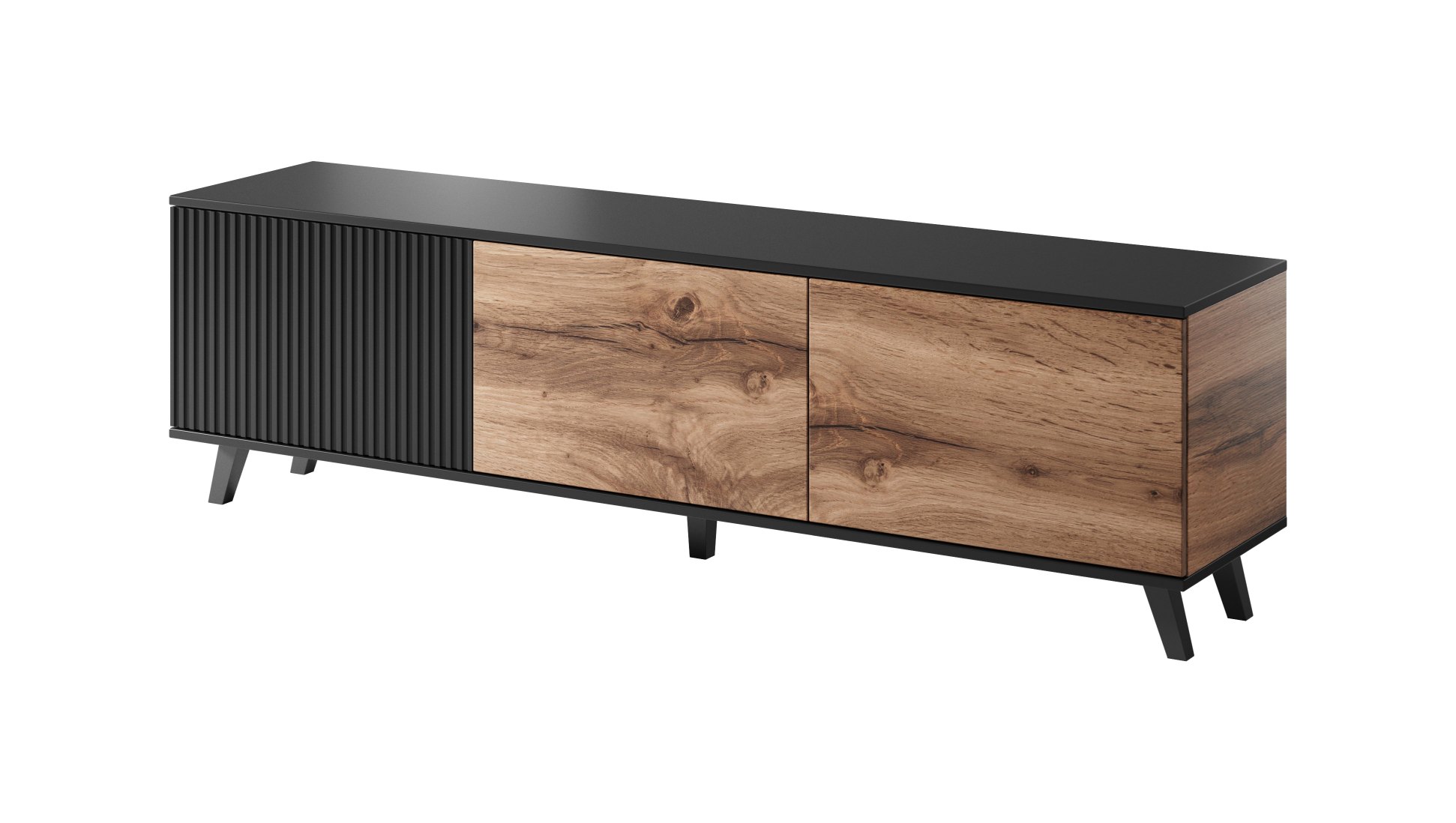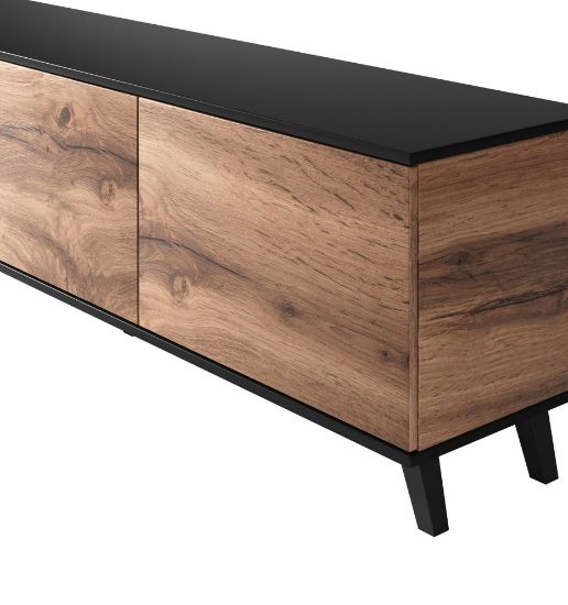 Materiały użyte do produkcji stolika zapewniają wysoką jakość i trwałość. Front wykonany jest z MDF-u okleinowanego dębem wotan, co nadaje meblowi naturalnego charakteru. Korpus z płyty meblowej, pokryte są okleiną oraz polipropylenu dodają lekkości i nowoczesności. Kombinacja kolorów, łącząca dąb wotan z eleganckim, matowym czarnym, nadaje meblowi wyjątkowego uroku, który świetnie komponuje się z różnymi stylami aranżacyjnymi.