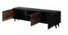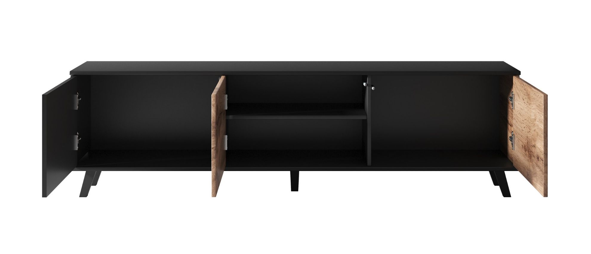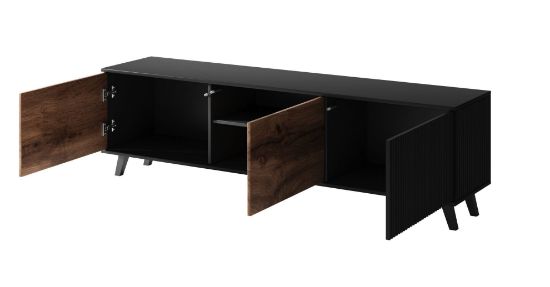Trzydrzwiowa konstrukcja stolika umożliwia praktyczne ukrywanie różnorodnych przedmiotów, zachowując jednocześnie porządek w pomieszczeniu. Wnętrze stolika zostało zaprojektowane z myślą o funkcjonalności, umożliwiając uporządkowane rozmieszczenie kabli oraz sprzętów audio-wideo. Dodatkowym atutem jest możliwość wyboru stron drzwi podczas montażu, co pozwala dostosować ją do indywidualnych preferencji i układu pomieszczenia.