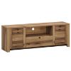 Stolik RTV Sevilla B 2d1s Dąb Delano Ciemny łączy w sobie funkcjonalność z estetyką naturalnego drewna, wprowadzając do salonu przyjemną, jasną kolorystykę. Ten nowoczesny mebel sprawdzi się zarówno w przestronnych, jak i mniejszych wnętrzach, tworząc wygodne miejsce do przechowywania sprzętu RTV, konsol, pilotów i innych akcesoriów multimedialnych.