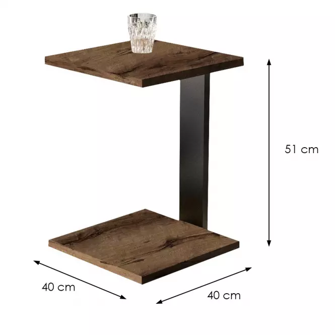 Kwadratowy kształt blatu zapewnia wygodę użytkowania i uniwersalność – stolik Saturn-40 świetnie sprawdzi się zarówno jako miejsce na filiżankę kawy, jak i dekoracyjna powierzchnia na stylowe dodatki, rośliny czy książki. Stabilny metalowy stelaż, w klasycznej czerni, tworzy wyraźny kontrast z drewnopodobnym blatem, co dodaje całości nowoczesnego charakteru i nuty industrialnej elegancji. Konstrukcja ta gwarantuje nie tylko wytrzymałość, ale również wizualną lekkość, dzięki czemu Saturn-40 idealnie pasuje do mniejszych przestrzeni, dodając im wyrazistości, ale nie dominując wnętrza.