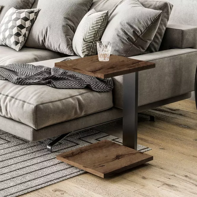Stolik Saturn-40 w kolorze dębu to elegancki, nowoczesny element, który doda wnętrzu stylu i funkcjonalności. Dzięki unikalnemu połączeniu ciemnego, drewnopodobnego wybarwienia blatu z solidnym, metalowym stelażem, stolik ten wyróżnia się niebanalnym designem i doskonale wpasowuje się w różnorodne aranżacje. Blat, wykonany z wysokiej jakości płyty wiórowej, jest wykończony w matowej tonacji, która podkreśla naturalny charakter dębowego wybarwienia i nadaje mu ciepły, przytulny wygląd. Ciemny odcień drewna dodaje stolikowi głębi, czyniąc go wyrazistym elementem wystroju.