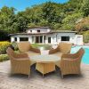 Technorattanowy okragły stół idealnie wpasuje się w kompozycje każdego balkonu, tarasu czy ogrodu. Jego nowoczesny design przypadnie do gustu każdemu. Stół posiada przyssawki, co zapewnia, że blat jest stabilny i nie przesuwa się. Konstrukcja stołu to aluminium, a blat wykonany jest ze szkła hartowanego.