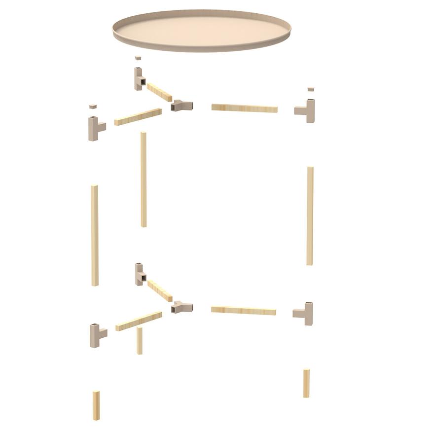 Stolik ma okrągły blat o średnicy 46 cm, wykonany z drewna o matowym wykończeniu, co podkreśla jego subtelny i nowoczesny styl. Stelaż wykonany z wytrzymałego plastiku zapewnia lekkość konstrukcji oraz stabilność, a wysokość 53 cm sprawia, że stolik idealnie nadaje się jako mebel pomocniczy w salonie, sypialni czy na tarasie.