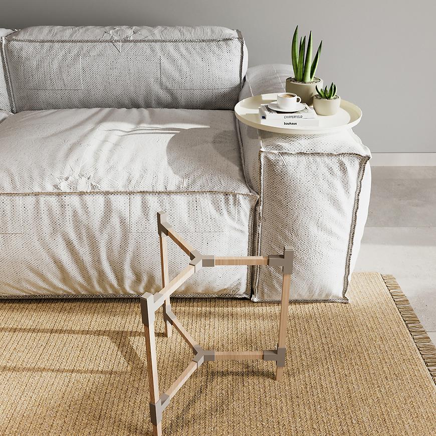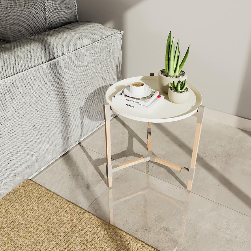 Stolik z tacą FIX2023-1 to nowoczesny i funkcjonalny mebel, który doskonale sprawdzi się w każdym wnętrzu. Połączenie beżowego koloru z naturalnym odcieniem drewna nadaje mu elegancji i uniwersalnego charakteru, dzięki czemu pasuje zarówno do minimalistycznych, jak i bardziej klasycznych aranżacji.