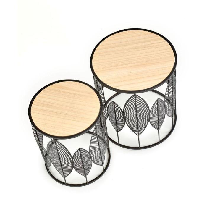 Okrągłe stoliki Zola wniosą do wybranego wnętrza funkcjonalność połączoną z aspektem wysokiej estetyki. Okrągłe blaty stworzono z płyty MDF okleinowej, a następnie wykończono je w odcieniu naturalnym. Stabilna podstawa stolików o okrągłej konstrukcji z dekoracyjnymi grafikami w kształcie piór lub liści wykonana jest ze stali malowanej proszkowo na kolor czarny. Odmiennych rozmiarów stoliki można wykorzystać razem lub osobno — świetnie sprawdzą się w formie stolików kawowych lub stolików pomocniczych, na których wyeksponujemy atrakcyjne dekoracje lub zielone rośliny doniczkowe.