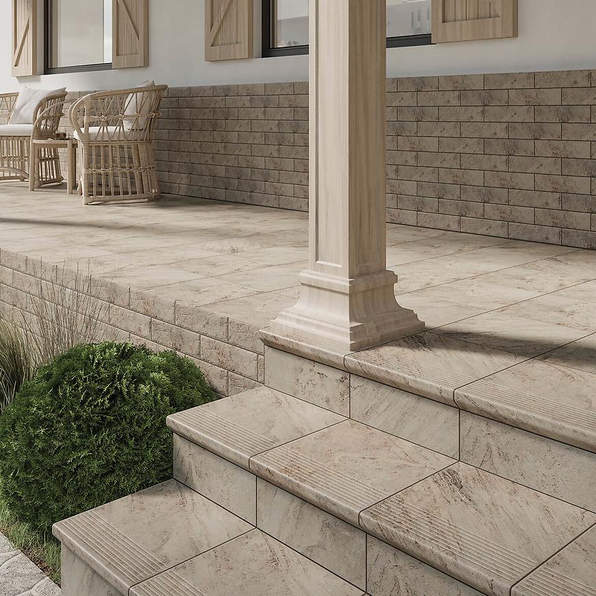 Stopnica Prosta Kapinos Mattone Pietra Ochra 30/33 to solidna stopnica klinkierowa o wymiarach 33 × 30 cm i grubości 1,1 cm. Matowa powierzchnia w ciepłym brązowym odcieniu imituje naturalny kamień, nadając elegancki wygląd. Produkt jest mrozoodporny, o klasie ścieralności 4 i antypoślizgowości R10, co zapewnia bezpieczeństwo i trwałość. Sprzedawana w opakowaniach, gwarantuje solidne wykończenie stopni na lata.