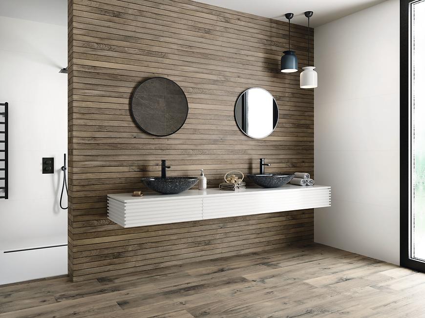 Płytka bazowa o matowej powierzchni, idealna do wnętrz, została zaprojektowana z myślą o aranżacji ścian. Jej drewnopodobne wzornictwo wprowadza ciepło i naturalny charakter do każdego pomieszczenia, jednocześnie zachowując elegancki i nowoczesny styl. Płytka jest rektyfikowana, co pozwala na precyzyjne i estetyczne układanie z minimalną fugą, podkreślając jednolitą i harmonijną powierzchnię ściany. Doskonale sprawdzi się w salonie, sypialni, kuchni czy łazience, tworząc trwałe i efektowne wykończenie wnętrza.