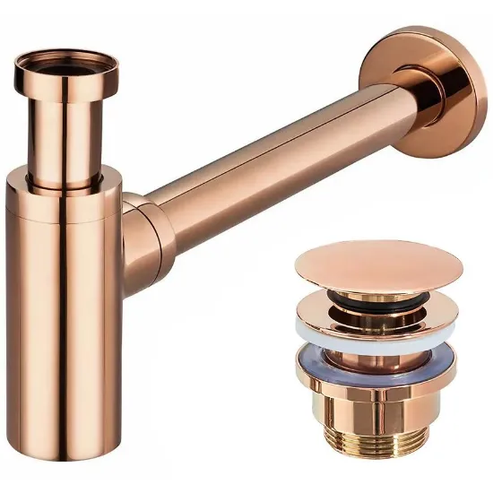 Wykonanie syfonu z mosiądzu zapewnia wysoką trwałość oraz odporność na działanie wody i detergentów. To rozwiązanie dla osób ceniących solidne i estetyczne wykończenie armatury łazienkowej. Różowe złoto w połączeniu z klasycznym designem syfonu nadaje wnętrzu wyjątkowego stylu i harmonii.