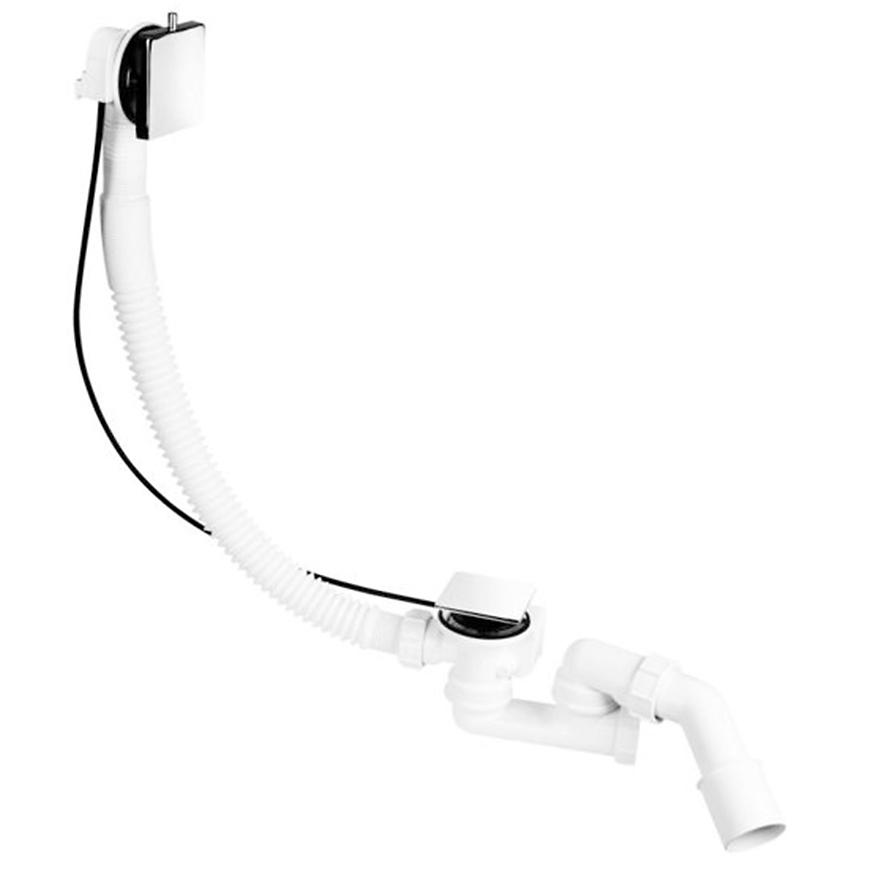 Automatyczny mechanizm zamykania zapewnia wygodę codziennego użytkowania, a zastosowane zasyfonowanie 40/50 mm chroni przed nieprzyjemnymi zapachami, jednocześnie umożliwiając łatwe czyszczenie poprzez boczną rewizję. Wąskie gniazdo przelewu oraz kwadratowy korek nadają zestawowi minimalistyczny charakter, idealnie komponujący się z nowoczesnymi wannami. Długość przelewu i linki wynosząca 1000 mm pozwala na swobodny montaż w różnych modelach wanien.