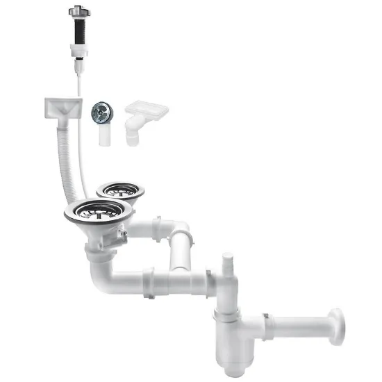 Syfon zlew automat 2-kom wyjście pralka zmywarka 19041 to funkcjonalne rozwiązanie do nowoczesnych kuchni, łączące wygodę i trwałość. Wykonany z wysokiej jakości tworzywa PP, zapewnia odporność na uszkodzenia mechaniczne i długotrwałe użytkowanie. Dzięki praktycznemu przyłączu do pralki lub zmywarki, syfon umożliwia łatwe podłączenie dodatkowych urządzeń AGD, zwiększając komfort codziennego użytkowania. Wyposażony w standardowe przyłącze o średnicy 40 mm oraz automatyczny korek cedzak w eleganckim chromowanym wykończeniu, gwarantuje skuteczne odprowadzanie wody i ochronę przed zatorami. Ten syfon do zlewu 2-komorowego to idealne połączenie funkcjonalności, trwałości i estetyki, które sprawdzi się w każdej kuchni.