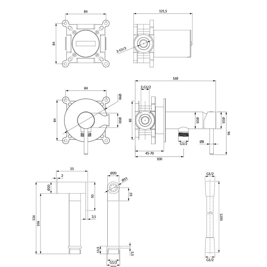 W zestawie znajduje się wąż natryskowy o długości 125 cm, wykonany z elastycznej gumy w oplocie stalowym, co zwiększa jego wytrzymałość i odporność na zginanie. Podtynkowy system montażu zapewnia estetyczne wykończenie i oszczędność miejsca, idealnie wpisując się w nowoczesne trendy aranżacji łazienek.