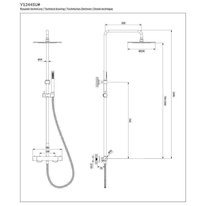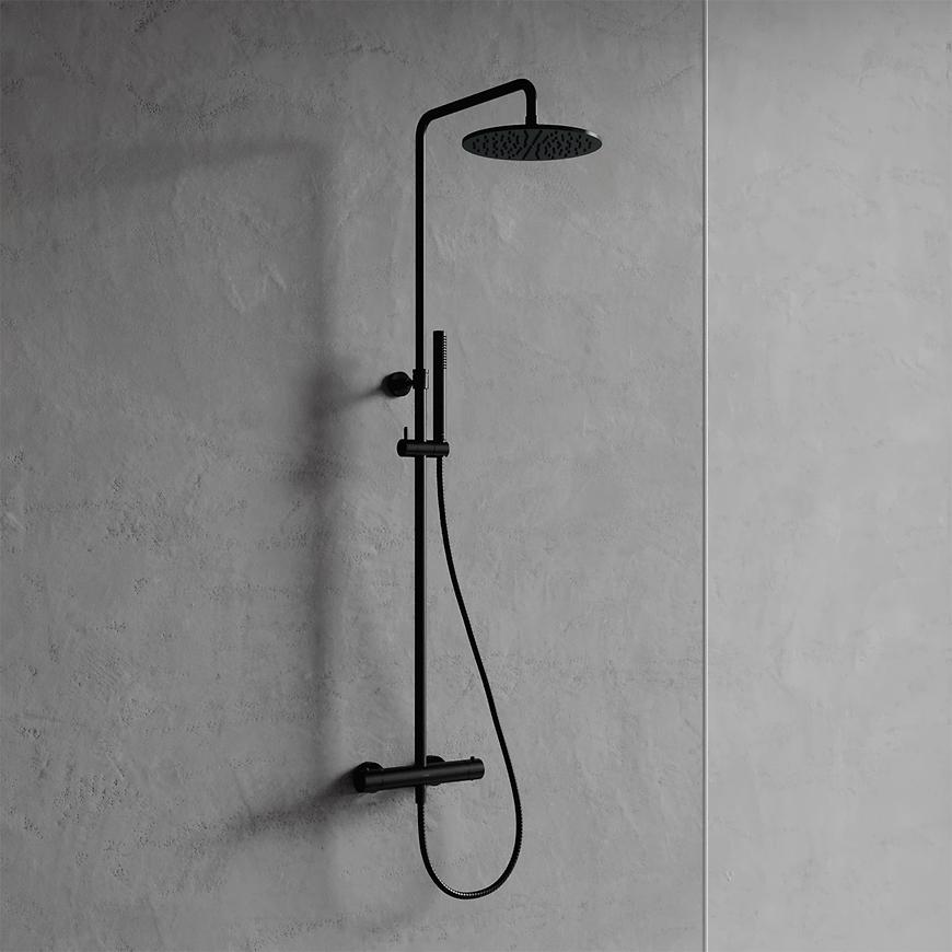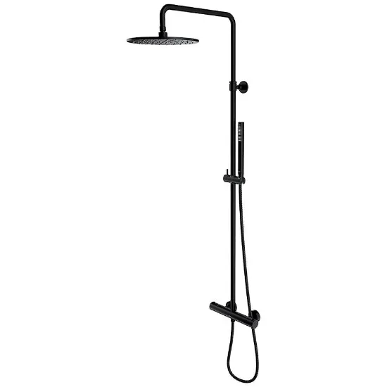 Czarny system natryskowy Y z deszczownicą i baterią termostatyczną to eleganckie i praktyczne wyposażenie nowoczesnej łazienki. Zapewnia komfortową kąpiel, precyzyjną kontrolę temperatury i designerski wygląd pasujący do współczesnych aranżacji.