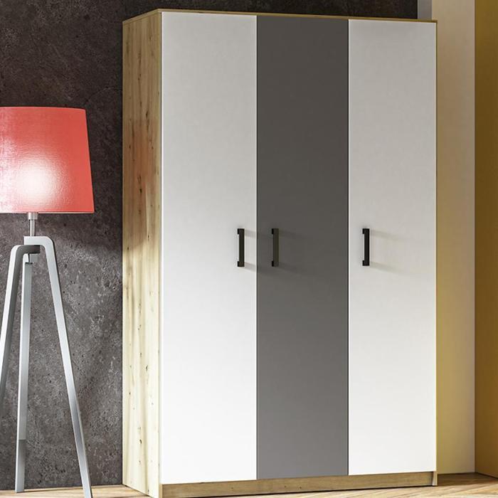 Wygląd szafy Fini zachwyci każdego zwolennika nowoczesnego, a zarazem uniwersalnego stylu. Szafa posiada wystarczającą ilość miejsca na ubrania oraz na inne przedmioty. Jest to niezbędny element wyposażenia w każdym domu, garderobie czy przedpokoju. Materiał wykonania to płyta wiórowa laminowana.