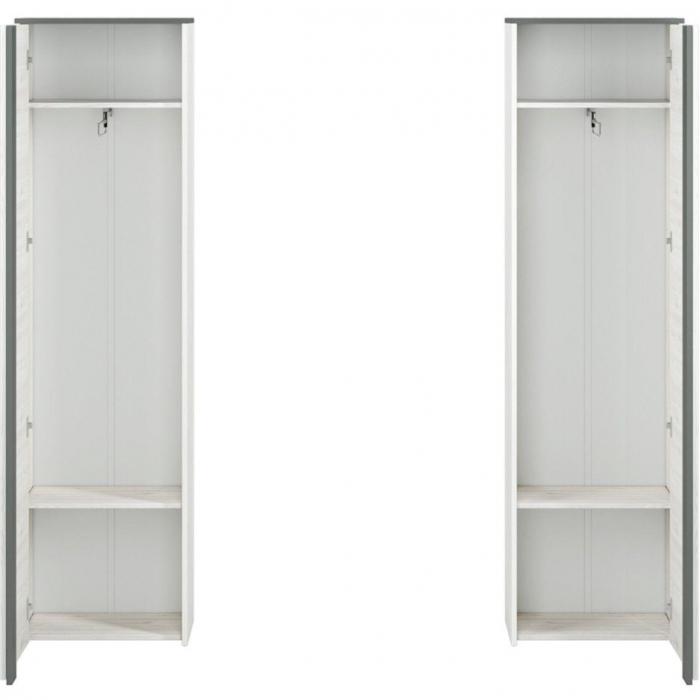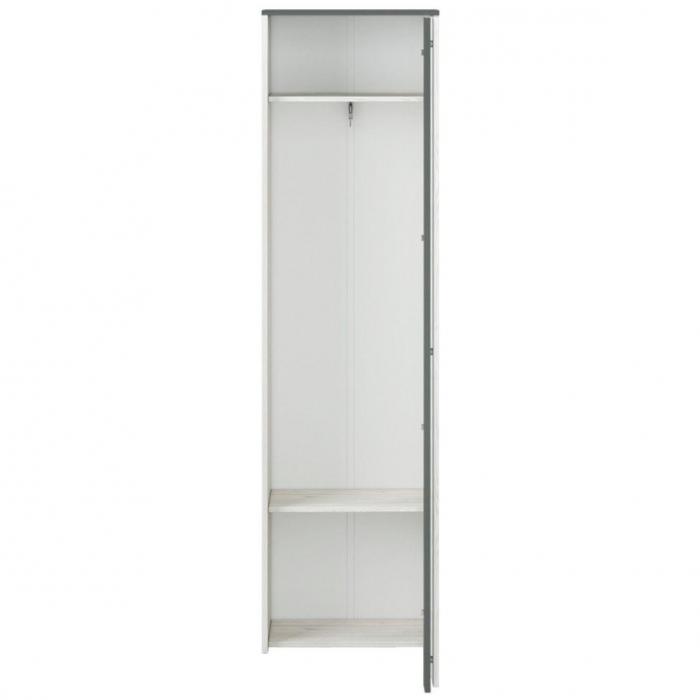 Szafa w kolorze sosna śnieżna/anracyt to doskonała propozycja do dziennego, ale znajdzie swoje miejsce również w innym pomieszczeniu, jak na przykład - przedpokój czy garderobie, sypialni. Materiał wykonania to płyta laminowanej. Szafa posiada półki, drążek na ubrania. Mebel będzie świetnym miejscem do wieszania ubrań, na buty lub inne domowe tekstylia. Nowoczesny styl mebli wpadnie do gustu każdemu, kto poszukuje eleganckiego, klasycznego, a zarazem nowoczesnego umeblowania. Idealnie wpasuje się w większość aranżacji. Szafa przeznaczona do samodzielnego montażu.