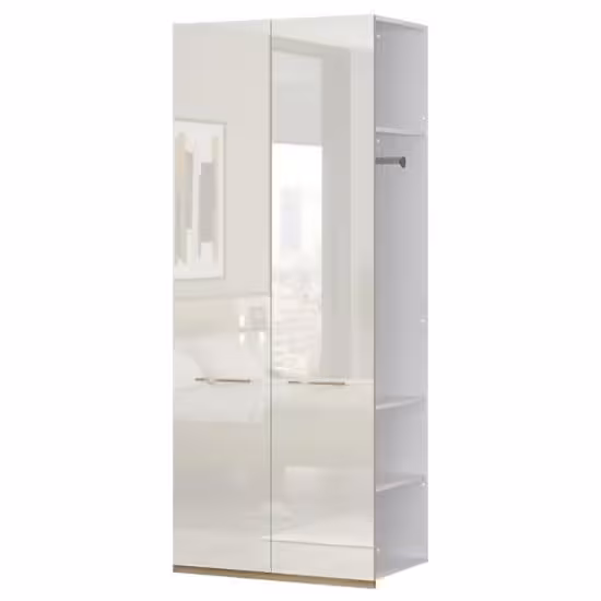 Szafa uchylna w kolorze beige/pacific walnut to propozycja do pokoju dziennego, ale znajdzie swoje miejsce również w innym pomieszczeniu, jak na przykład - przedpokój czy garderobie. Materiał wykonania to płyta laminowana. Szafa posiada półki oraz drążek na ubrania. Nowoczesny styl mebli wpadnie do gustu każdemu, kto poszukuje eleganckiego, klasycznego, a zarazem nowoczesnego umeblowania. Idealnie wpasuje się w większość aranżacji. Przeznaczona do samodzielnego montażu. Mebel do samodzielnego montażu.