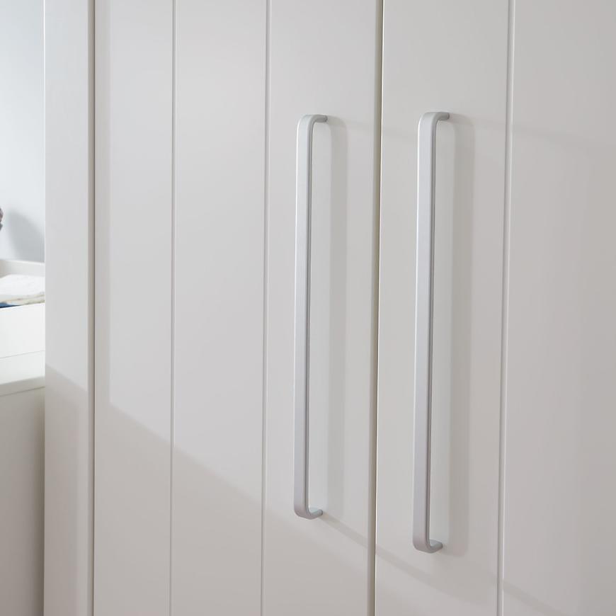 Regulacja półek i drążków w zakresie 0-64 mm pozwala na elastyczne dostosowanie wysokości, co jest szczególnie przydatne przy zmieniających się wymaganiach, jakie stawiają rosnące dzieci. Szafa jest nie tylko praktyczna, ale i estetycznie wykonana, z aluminiowymi uchwytami dodającymi eleganckiego charakteru.