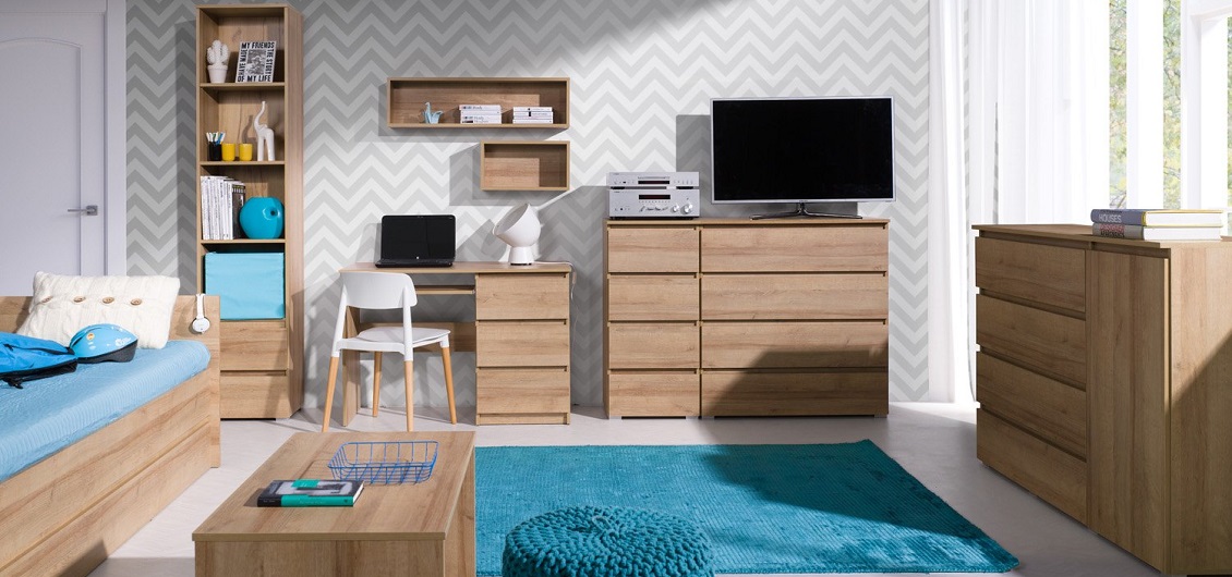 Kolekcja Cosmo składa się z kilku funkcjonalnych elementów, które pomagają stworzyć wygodne i piękne wnętrze pokoju młodzieżowego.