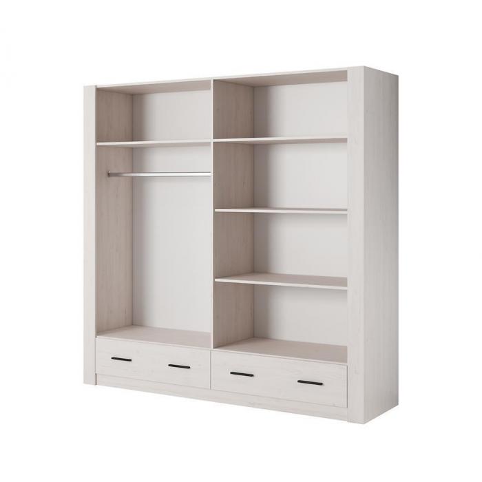 Szafa w kolorze sosna andersen z serii Anders to doskonała propozycja do dziennego, ale znajdzie swoje miejsce również w innym pomieszczeniu, jak na przykład - przedpokój czy garderobie, sypialni. Materiał wykonania to płyta laminowana. Szafa posiada półki, drążek na ubrania oraz szuflady. Duża szafa posiada również lustro, które sprawi, że pomieszczenie stanie się optycznie większe. Mebel będzie świetnym miejscem do wieszania ubrań, na buty lub inne domowe tekstylia. Nowoczesny styl mebli wpadnie do gustu każdemu, kto poszukuje eleganckiego, klasycznego, a zarazem nowoczesnego umeblowania. Idealnie wpasuje się w większość aranżacji. Szafa przeznaczona do samodzielnego montażu.