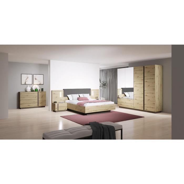Szafa w kolorze dąb artisan/grafit z serii Arco to doskonała propozycja do dziennego, ale znajdzie swoje miejsce również w innym pomieszczeniu, jak na przykład - przedpokój czy garderobie, sypialni. Materiał wykonania to płyta laminowana. Szafa posiada półki, drążek na ubrania oraz szuflady. Duża szafa posiada również lustro, które sprawi, że pomieszczenie stanie się optycznie większe. Mebel będzie świetnym miejscem do wieszania ubrań, na buty lub inne domowe tekstylia. Nowoczesny styl mebli wpadnie do gustu każdemu, kto poszukuje eleganckiego, klasycznego, a zarazem nowoczesnego umeblowania. Idealnie wpasuje się w większość aranżacji. Szafa przeznaczona do samodzielnego montażu.