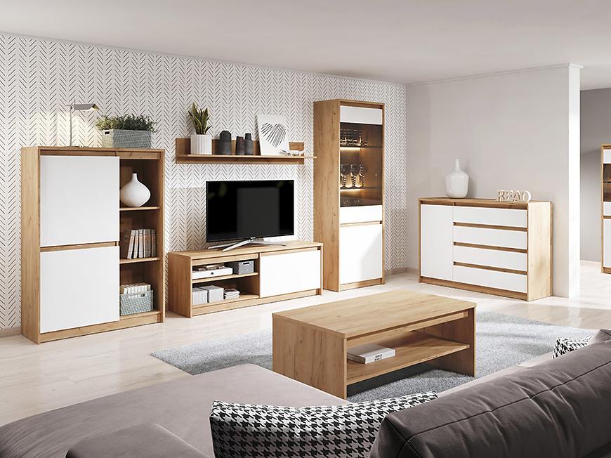 Szafa Xelo charakteryzuje się jasnym drewnopodobnym wybarwieniem, które nadaje jej eleganckiego i przyjemnego wyglądu. Korpus w kolorze złoty craft oraz matowe wykończenie frontów i korpusu nadają meblowi subtelnego blasku. Konstrukcja frontów i korpusu oparta jest na płycie wiórowej laminowanej, co gwarantuje trwałość i wytrzymałość mebla.
