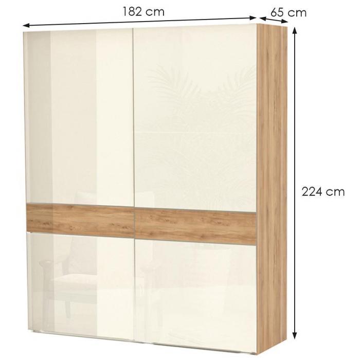 Szafa w kolorze beige/pacific walnut to propozycja do pokoju dziennego, ale znajdzie swoje miejsce również w innym pomieszczeniu, jak na przykład - przedpokój czy garderobie. Materiał wykonania to płyta laminowana. Szafa posiada półki oraz drążek na ubrania. Nowoczesny styl mebli wpadnie do gustu każdemu, kto poszukuje eleganckiego, klasycznego, a zarazem nowoczesnego umeblowania. Idealnie wpasuje się w większość aranżacji. Przeznaczona do samodzielnego montażu. Mebel do samodzielnego montażu.