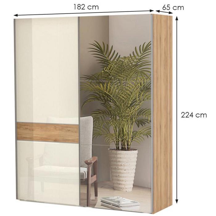 Szafa w kolorze beige/pacific walnut to propozycja do pokoju dziennego, ale znajdzie swoje miejsce również w innym pomieszczeniu, jak na przykład - przedpokój czy garderobie. Materiał wykonania to płyta laminowana. Szafa posiada półki oraz drążek na ubrania. Mebel posiada lustro, które sprawi, że pomieszczenie stanie się optycznie większe. Nowoczesny styl mebli wpadnie do gustu każdemu, kto poszukuje eleganckiego, klasycznego, a zarazem nowoczesnego umeblowania. Idealnie wpasuje się w większość aranżacji. Przeznaczona do samodzielnego montażu. Mebel do samodzielnego montażu.