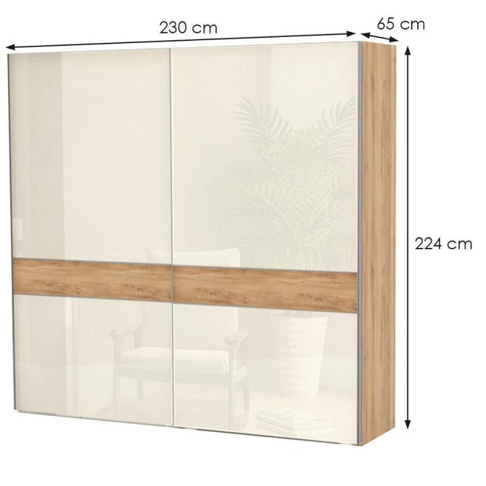 Szafa w kolorze beige/pacific walnut to propozycja do pokoju dziennego, ale znajdzie swoje miejsce również w innym pomieszczeniu, jak na przykład - przedpokój czy garderobie. Materiał wykonania to płyta laminowana. Szafa posiada półki oraz drążek na ubrania. Nowoczesny styl mebli wpadnie do gustu każdemu, kto poszukuje eleganckiego, klasycznego, a zarazem nowoczesnego umeblowania. Idealnie wpasuje się w większość aranżacji. Przeznaczona do samodzielnego montażu. Mebel do samodzielnego montażu.