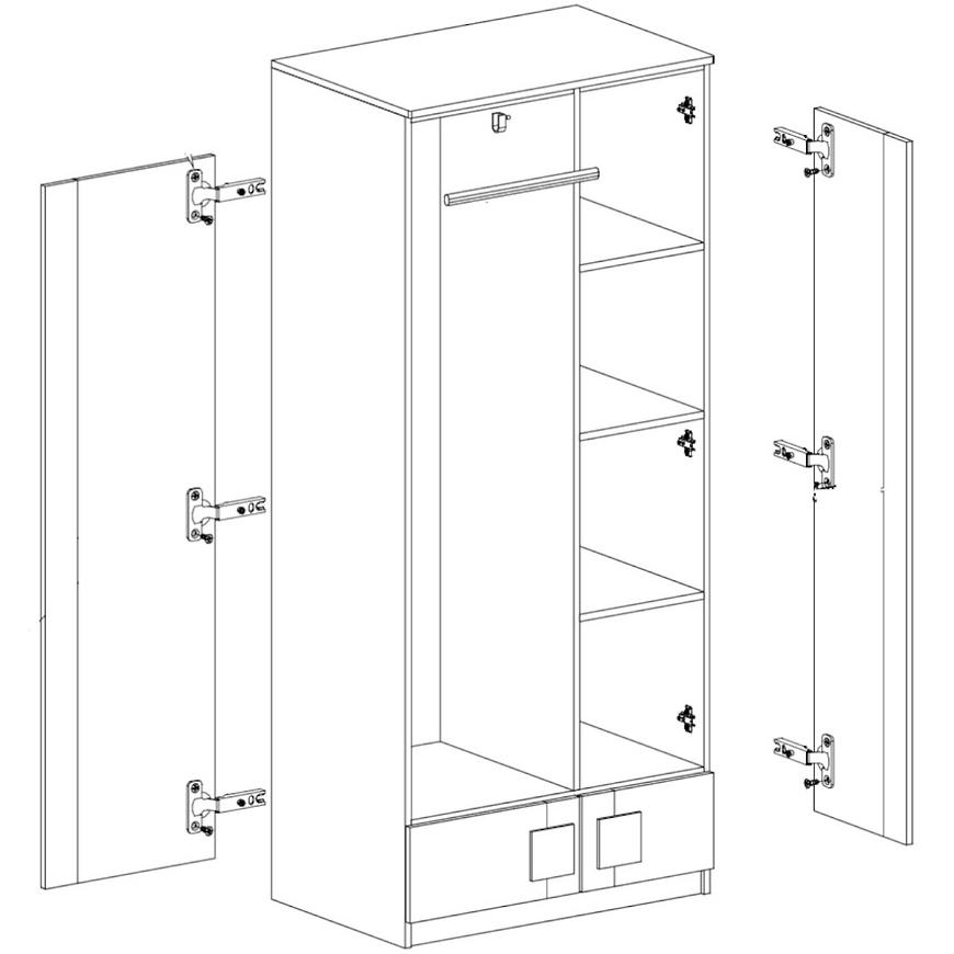 Szafa Gumi G1 wyposażona jest w uchwyt wykonany z tworzywa sztucznego w kolorze popielatym, który dodaje meblowi nowoczesnego charakteru i ułatwia otwieranie drzwi. Dodatkowo, szuflady zamontowane są na prowadnicach kulkowych z pełnym wysuwem, co zapewnia łatwy dostęp do przechowywanych przedmiotów.