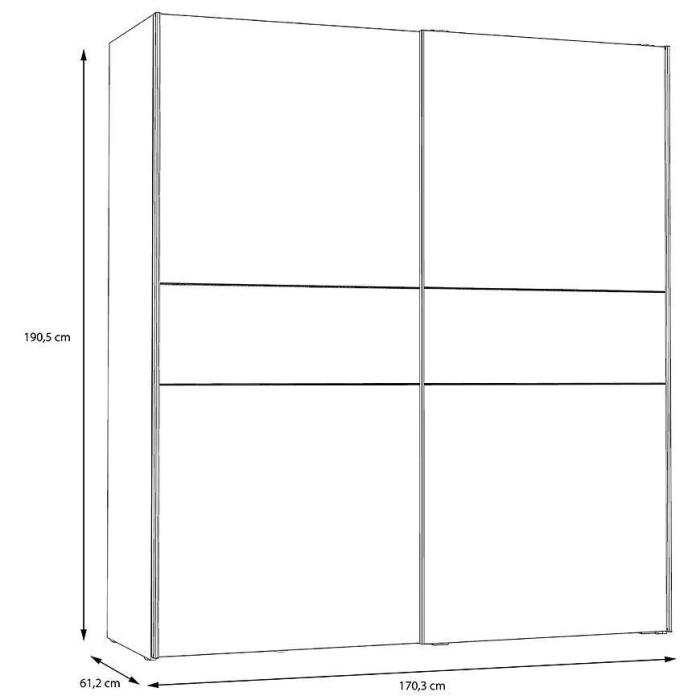 Szafa podzielona jest na dwie części, w których znajduje się miejsce na ubrania wiszące, oraz półki górne. Całość tworzy wygodne miejsce do przechowywania odzieży lub dodatków. Spora przestrzeń w dolnej części szafy pozwoli na przechowywanie większych gabarytowo rzeczy lub obuwia. Korpus oraz fronty wykonano z płyty wiórowej laminowanej.