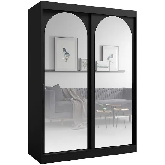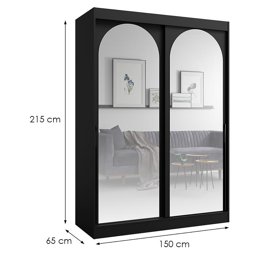 Ta dwudrzwiowa szafa z drzwiami przesuwnymi została zaprojektowana z myślą o maksymalnej wygodzie użytkowania – drzwi przesuwne nie zajmują dodatkowej przestrzeni przy otwieraniu, dzięki czemu szafa sprawdzi się nawet w mniejszych pomieszczeniach. Lustro umieszczone na frontach optycznie powiększa wnętrze i pełni praktyczną funkcję w codziennym użytkowaniu.