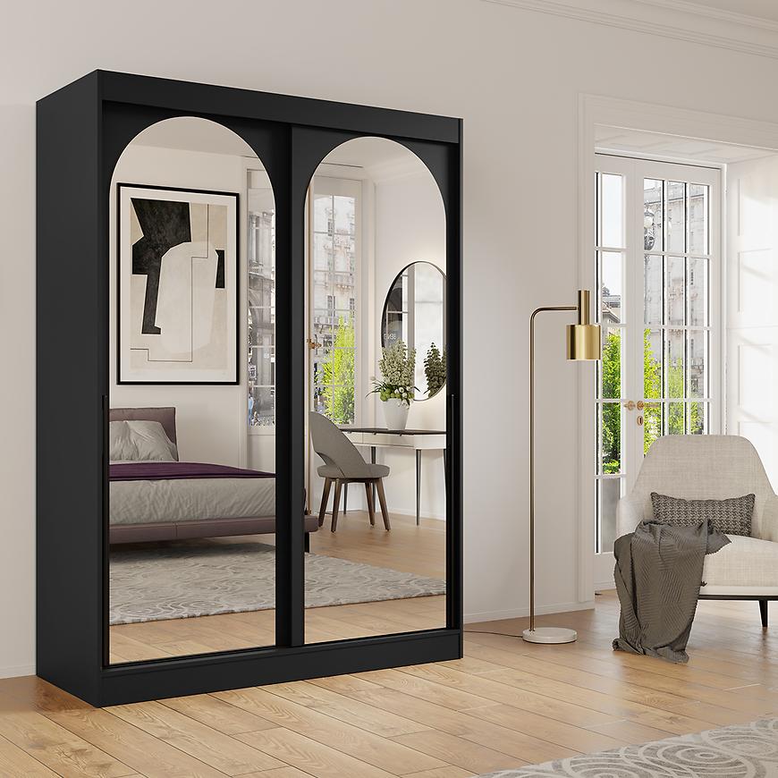 Szafa Modin w kolorze czarnym to propozycja dla osób ceniących sobie elegancję i subtelność. Matowe wykończenie dodaje jej nowoczesnego charakteru i sprawia, że doskonale wpisuje się w aktualne trendy wnętrzarskie.