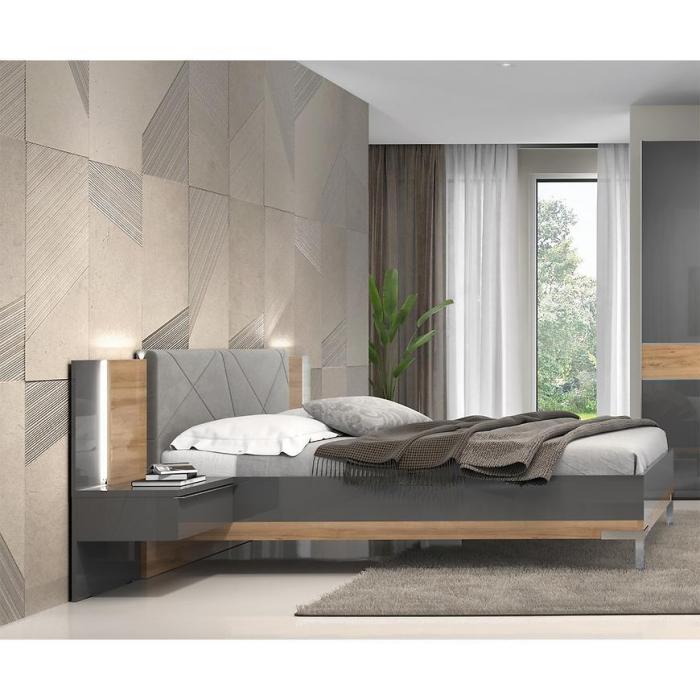 Łóżko z kolekcji Onyx zostało wykonane z płyty wiórowej lakierowanej. Powierzchnia spania wynosi 160x200 cm.