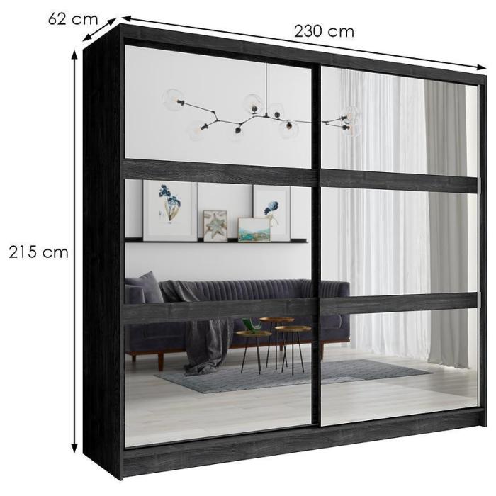 Szafa Togo to propozycja do pokoju dziennego, ale znajdzie swoje miejsce również w innym pomieszczeniu, jak na przykład - przedpokój czy garderobie. Materiał wykonania to płyta laminowana. Szafa posiada półki, drążek na ubrania, a także lustro, które sprawi, że pomieszczenie stanie się optycznie większe. Nowoczesny styl mebli wpadnie do gustu każdemu, kto poszukuje eleganckiego, klasycznego, a zarazem nowoczesnego umeblowania. Idealnie wpasuje się w większość aranżacji. Przeznaczona do samodzielnego montażu.